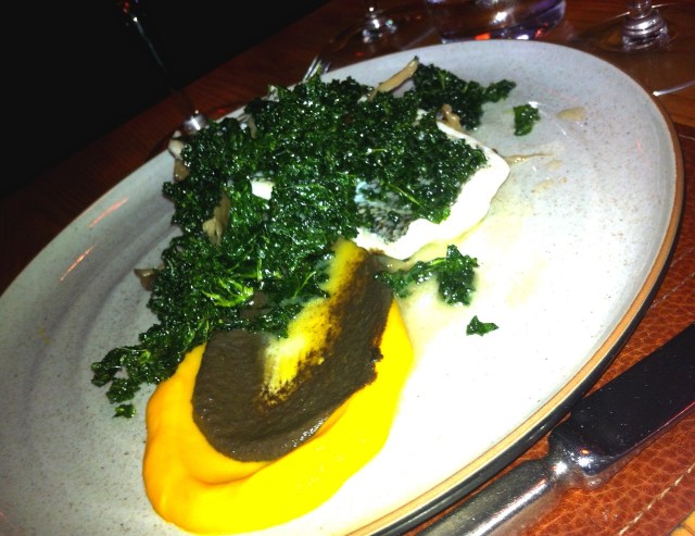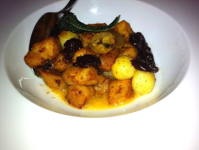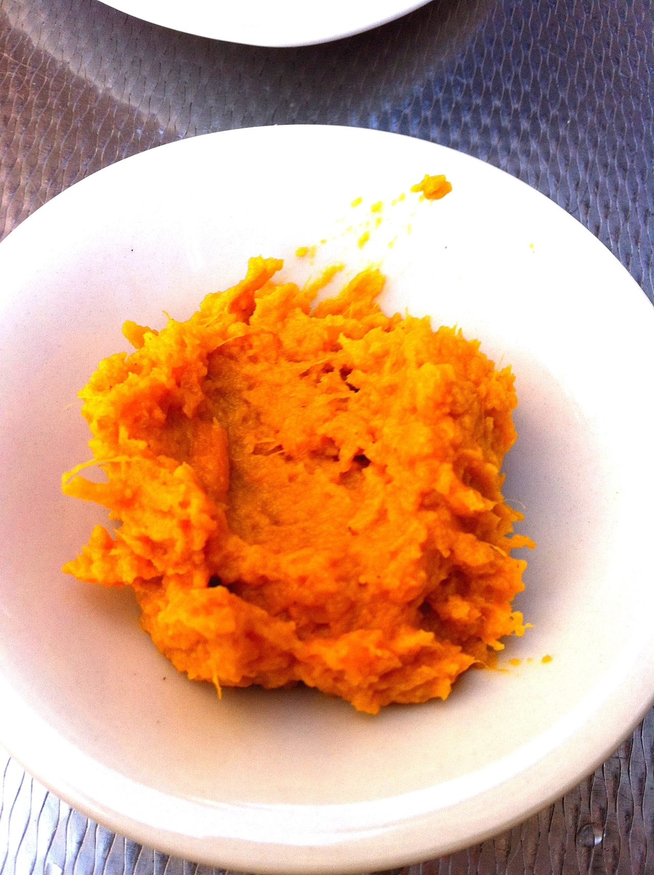 The waiter brought over bread, but instead of butter, they served us some sweet potato number for dipping. I dropped some of it on the table by accident, but I persevered.