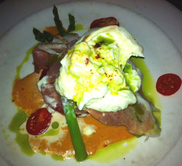 David Burke Kitchen (asparagus & buratta salad: watermelon, tomoato prisciutto)