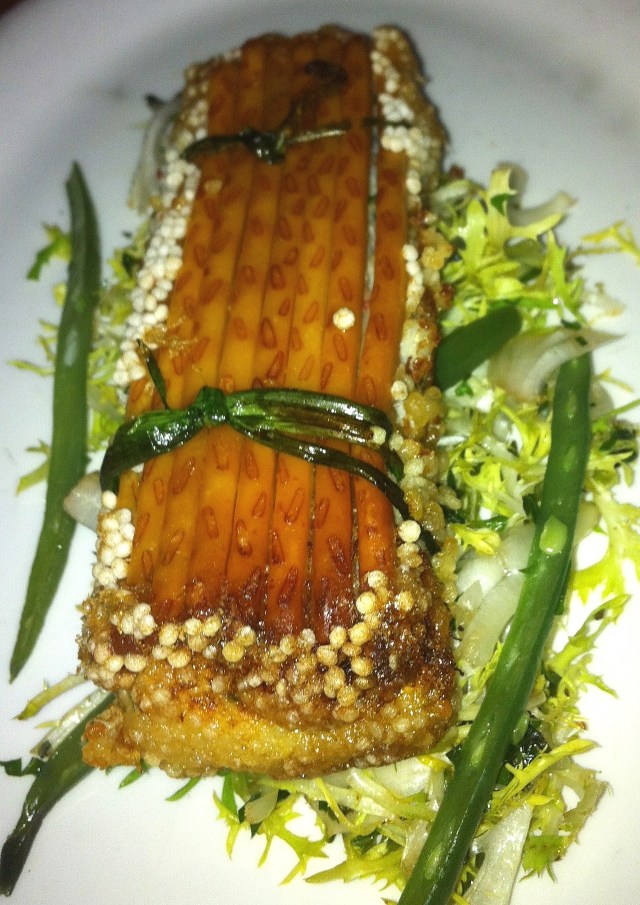To be fair, my mom had the dish altered, but it tasted like plain ol’ crab cakes to me, and those pretzel sticks reminded me of the pretzels I used to snack on at day camp (and pretend they were cigarettes obviously).
