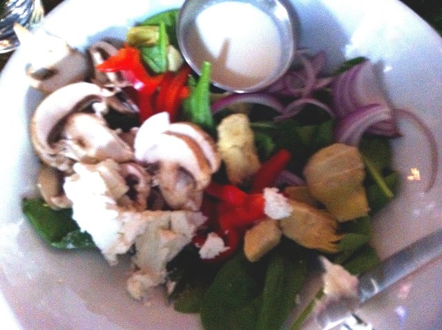 My salad essentially sucked, and they didn’t even offer me ground pepper. My sister obviously had no problem with a hunk of cheese, and my mom really was just eating crab cakes with pretzel sticks on top…and she still hadn’t gotten her wine.
