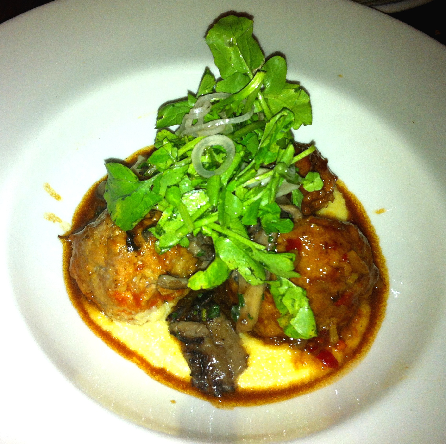 So to take it back old school we split a dumpling app (I call them dumps). They were steamed and came with a tomato sauce instead of a sodium filled soy sauce (ever notice how health places dowse everything in tomatoes for “acid” and “flavor?” I’m on to you guys. Cat is out of the bag). They were good, but I was full from the bread and sweet potato dip-a-roo.