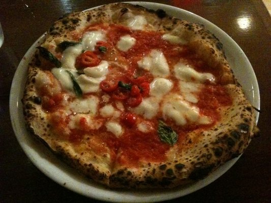 The owner gave out pizza samples while we waited for a table, and they warmed us right up while we waited outside in the cold. Pizza before pizza is a great appetizer. We ordered the funghi pizza, but I would be willing to try any listed on the menu.