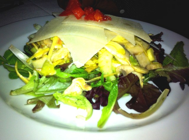 Novita (insalata di carciofini: baby artichoke with mushrooms and parmigiano shavings)