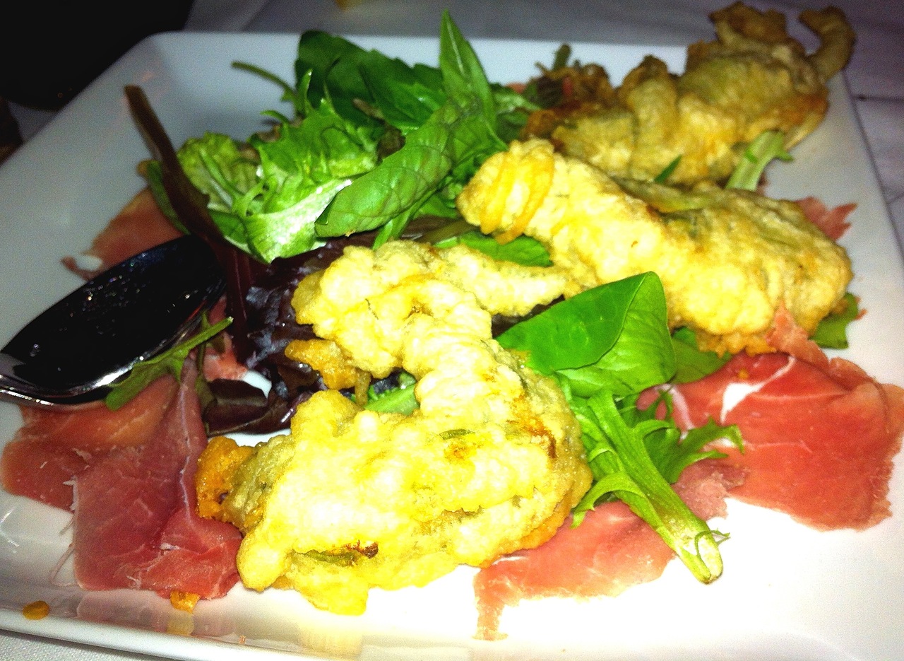 Novita (zucchini flower: stuffed with goat cheese and prosciutto)