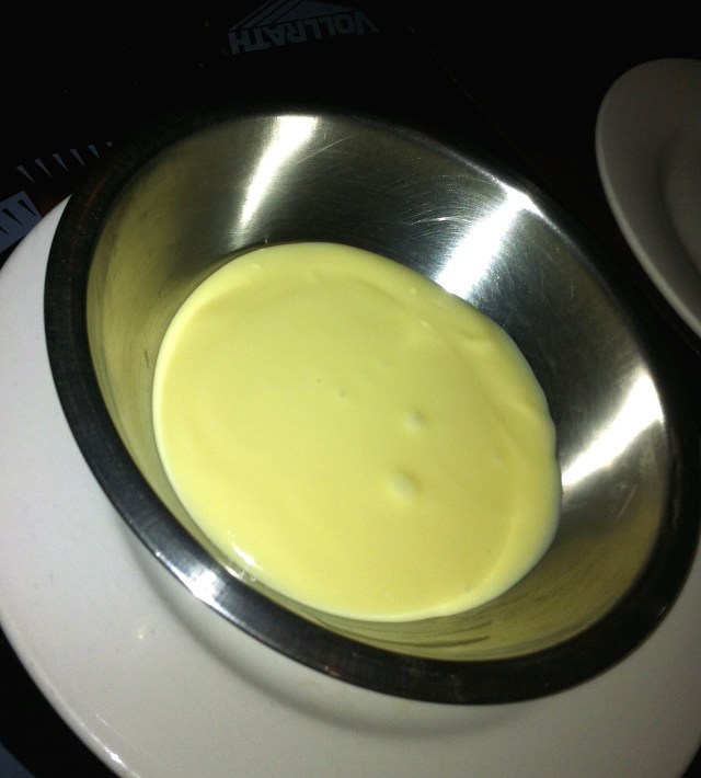 I am so dumb and didn’t take a picture of my FAVORITE part of the meal, the CHEESE. They described it as a texture like brie, but with more flavors. It was also served with a raisin and nut bread with a gelatin. Looking back I would have been happy with a cheese plate.