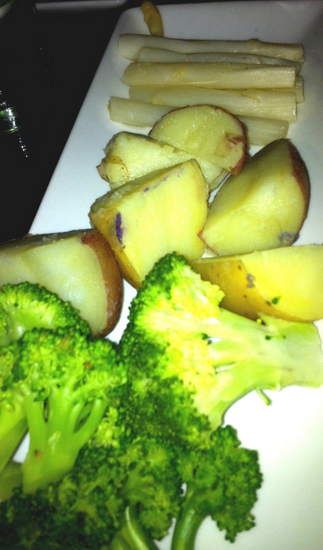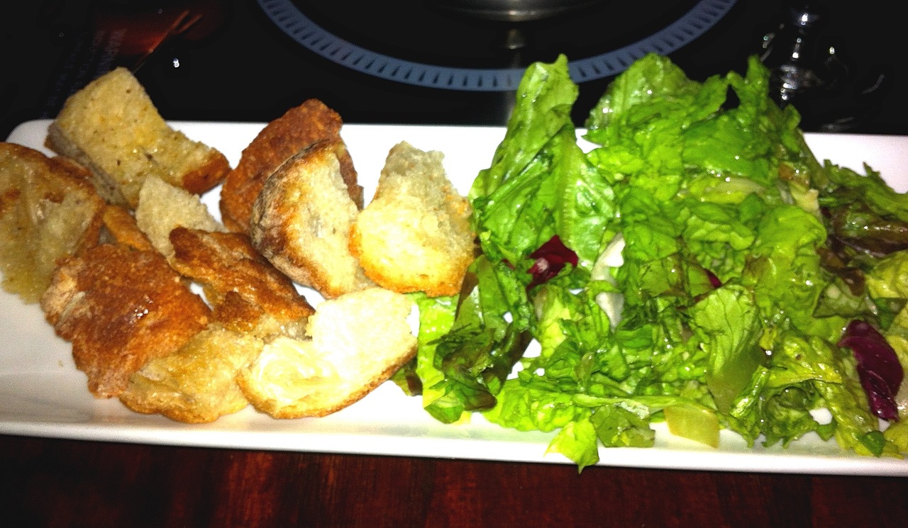 Appetizers arrive. I’m already buzzed, but I see my salad being placed at our table with the appetizer.