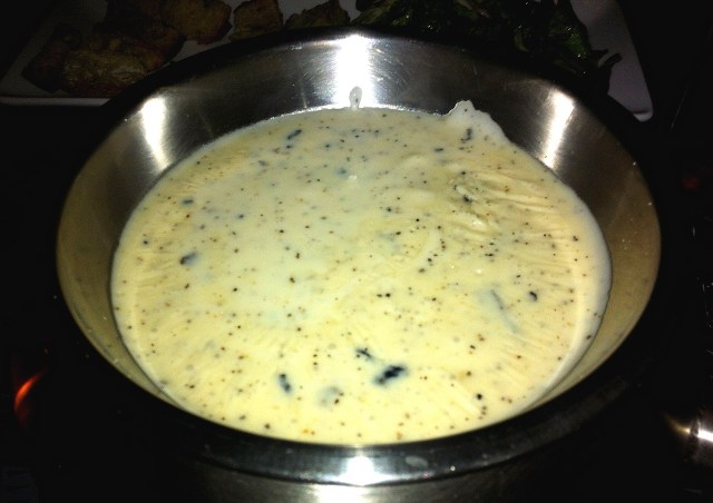 Well we know our waiter isn’t going to offer, so we ask another waitress about cheese plates, and order that with bread. This meal just got exponentially larger.